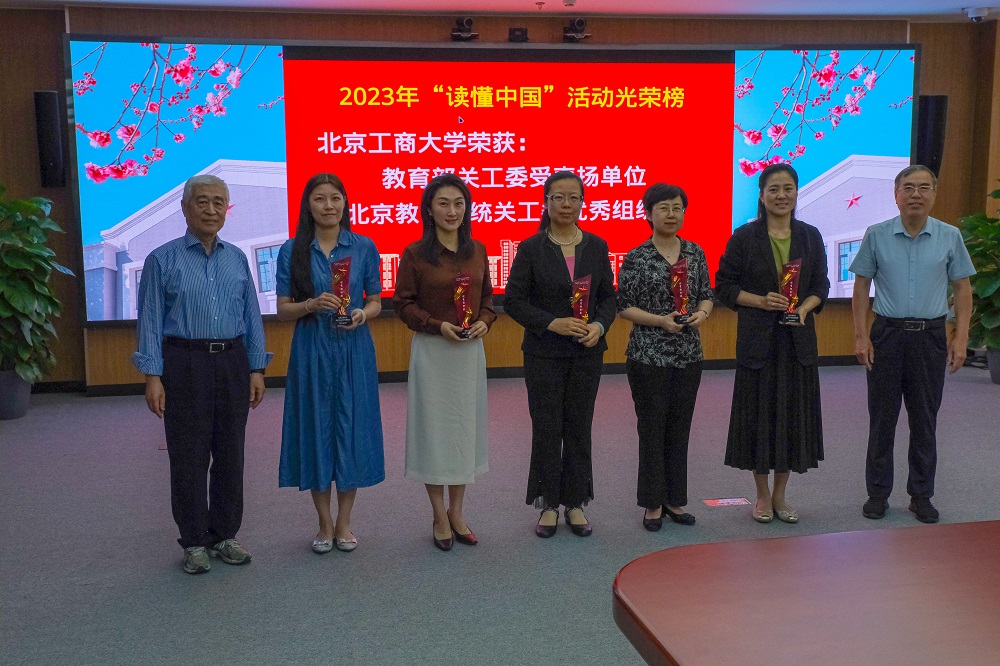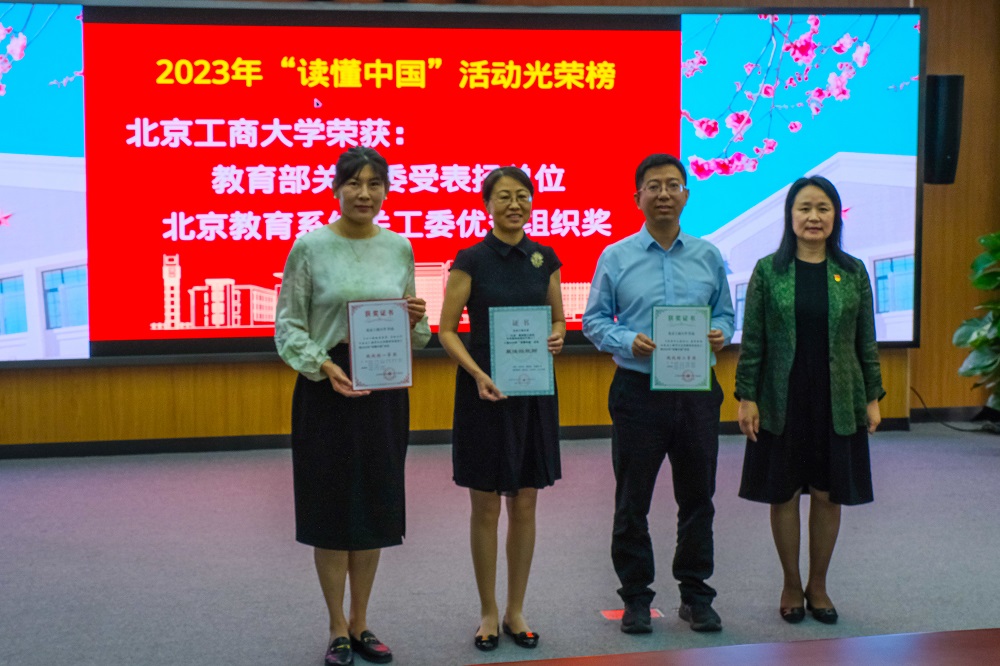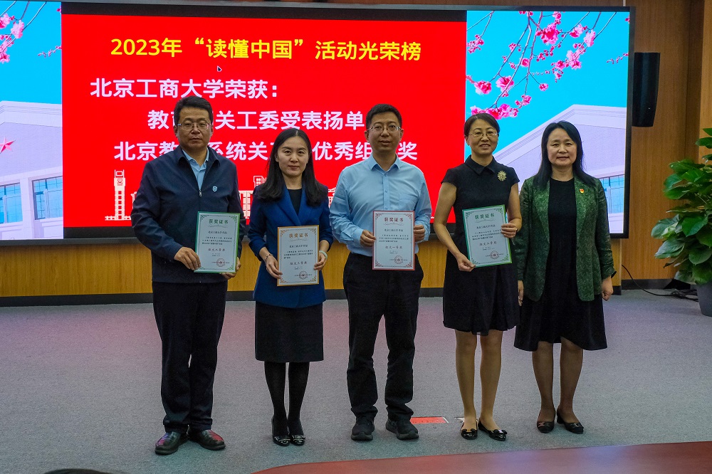 我校在2023年“讀懂中國”活動中取得優異成績,會議對有關學院和個人進行了表彰。學校關工委副主任馬廷鈞宣讀表彰通報,并與學校關工委副主任潘伯洲一起向獲得學校“最佳組織獎”“優秀組織獎”的學院頒發獎杯。校黨委副書記、關工委主任宋曉欣向獲得教育部關工委、北京教育系統關工委微視頻、征文獎項的個人頒發證書并表示祝賀。