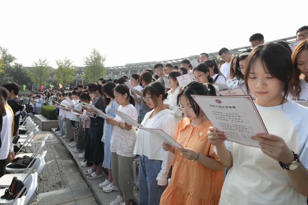 青春逢盛世,奮斗正當時。在大有可為的新時代,學校期待與你們——北工商的新主人們,攜手探索、勇擔使命、勇攀高峰,共同書寫建設一流大學、一流學科的絢麗篇章!愿2023級新生不忘初心、牢記使命,在實現理想的道路上矢志不渝、篤行不怠,用蓬勃的朝氣與必勝的信念,履行屬于你們的青春誓言,為祖國、為人民、為人類譜出新的絢爛華章!