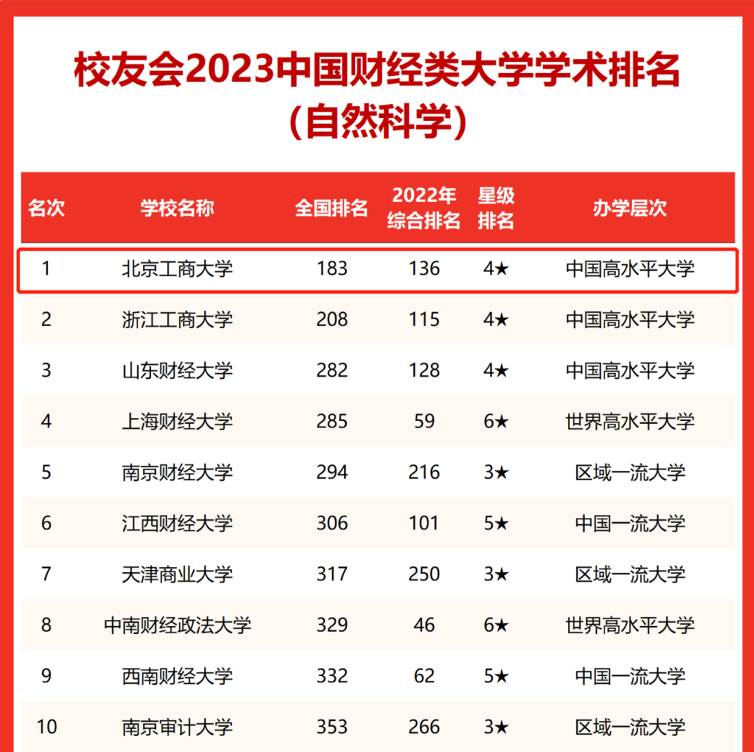 近日,全國第三方大學評價機構艾瑞深校友會網“大學360度全景數據平臺(公益)”最新發布校友會2023中國大學學術排名和2023中國各類型大學學術排名。北京工商大學雄居校友會2023中國財經類大學學術排名(自然科學)第一。