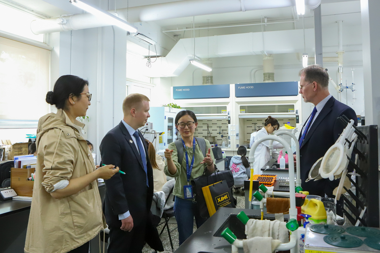 會談前,代表團一行在食品與健康學院副院長王蓓、國際交流與合作處副處長馬雪嬌的陪同下參觀了學校的實驗室設施,了解了我校在食品和輕工方面的相關科研情況。
