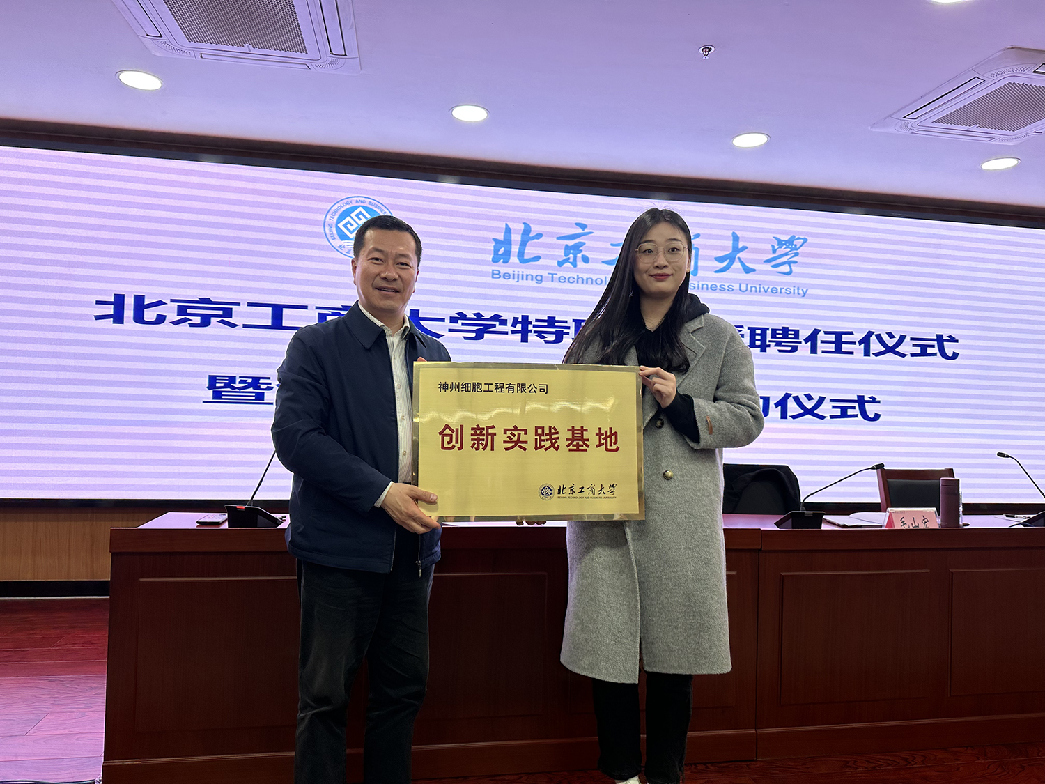 北京工商大學特聘教授聘任暨創新實踐基地掛牌是輕工與技術學院加強產學研深度融合,開展產教研創新模式的具體舉措,探索生物與醫藥專業創新型人才培養新路徑,推動學校輕工、食品專業群的新發展。人事處副處長錄馳沖,輕工科學技術學院副院長王鳳寰,食品營養與健康學院副院長李健,生物工程系負責人徐嘉良、閆怡,中輕檢測認證有限公司主任張曉磊,神州細胞工程有限公司人力總監趙瑩,悅康藥業股份有限公司主任姚鵬,生物系相關教師、2022級生物與醫藥專業學位研究生以及企業相關人員參加會議。