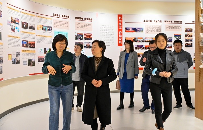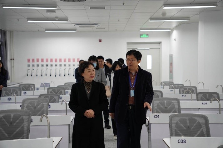王菁華一行在文二樓、文三樓智慧教室以及數(shù)字未來(lái)中心現(xiàn)場(chǎng)了解教育教學(xué)一體化平臺(tái)、知識(shí)圖譜子系統(tǒng)、“直錄直播、互聯(lián)互通、資源共享”智慧教學(xué)環(huán)境等數(shù)字賦能教育教學(xué)建設(shè)情況,在中國(guó)輕工業(yè)釀酒分子工程重點(diǎn)實(shí)驗(yàn)室了解政產(chǎn)學(xué)研融合應(yīng)用情況。在良鄉(xiāng)圖書(shū)館和校史館了解館藏資源數(shù)字化建設(shè)情況,走訪參觀視聽(tīng)空間、光影空間等個(gè)性化服務(wù)育人場(chǎng)所。