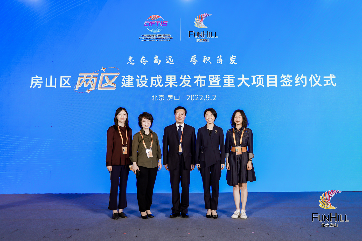 9月2日下午,北京市房山區“兩區”建設成果發布暨重大項目簽約儀式在中國國際服務貿易交易會首鋼園區舉辦。北京工商大學黨委常委、副校長劉敏華出席儀式,代表學校與房山區簽訂“文化旅游領域校地合作框架協議”。傳媒與設計學院院長王擎和部分班子成員隨行參加活動。