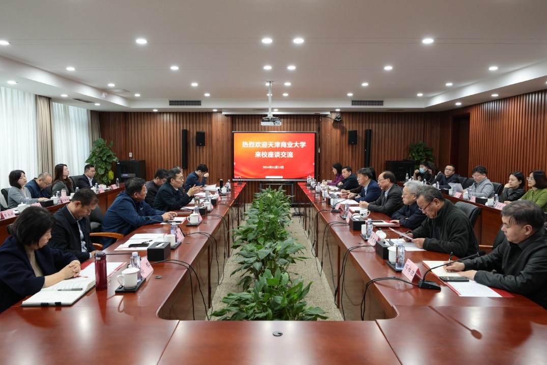 郭建華介紹了學校的發展思路、學科布局、科學研究、成果轉化等重點工作情況。他表示,學校堅持以習近平新時代中國特色社會主義思想為指導,牢牢把握社會主義辦學方向,緊緊圍繞黨和國家對高等教育的新部署新要求,聚焦“工商一體化”原則,錨定高水平研究型大學辦學定位,以優化學科布局為牽引,突出輕工、食品、商科特色領域優勢,發揮學科體系系統性和規模性優勢,拓展學科集群輻射帶動效應,大力推進“雙一流”建設,努力在中國式現代化和新時代首都發展中積極作為、走在前列。他談到,天津商業大學與我校人緣相親、文脈相通,希望未來在學科建設、人才培養、教育教學等方面進一步加強溝通、深化往來,推動兩校之間務實合作邁向新階段。