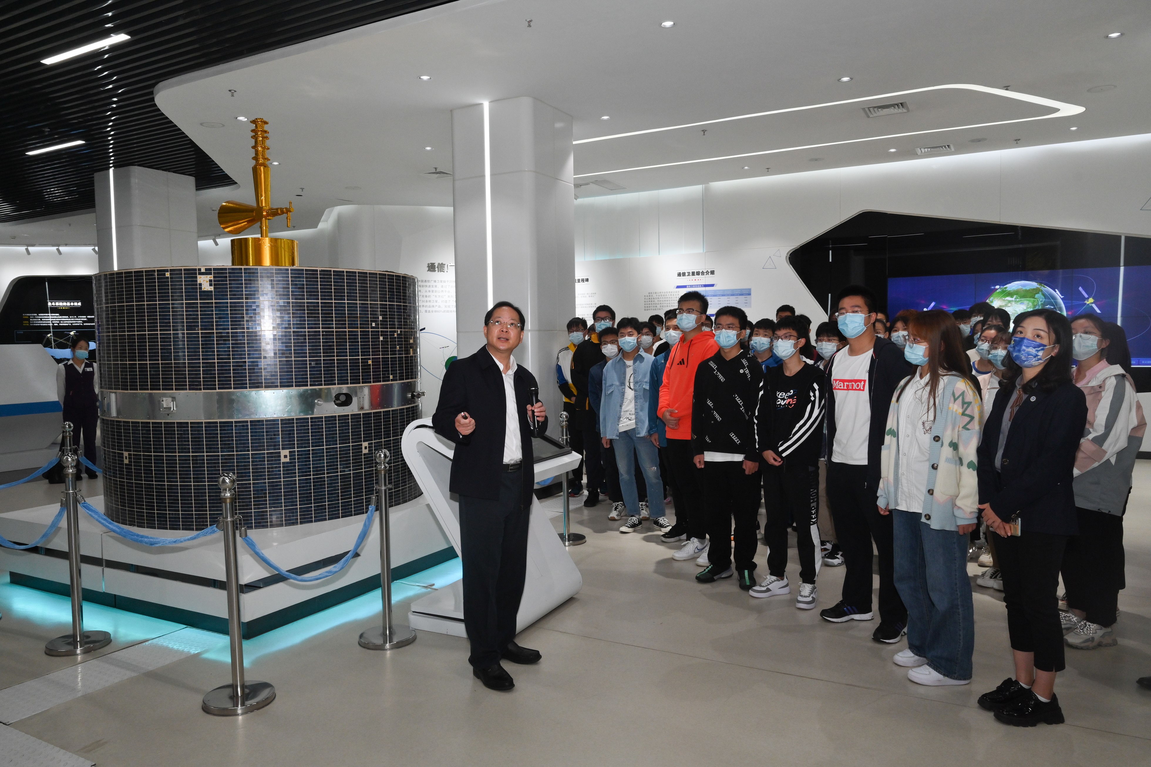 此次參觀活動得到了航天五院的大力支持。航天五院院長林益明介紹了中國航天科技集團各院所的研究領(lǐng)域和航天五院的發(fā)展歷程,并帶領(lǐng)師生參觀展廳。林益明針對不同時期通迅衛(wèi)星、導航衛(wèi)星、遙感衛(wèi)星、氣象衛(wèi)星、深空探測衛(wèi)星等不同種類衛(wèi)星的發(fā)展歷史、原理及功能,從它們的質(zhì)量、使用壽命、用途、功率等方面做了深入淺出的對比講解,詳細講解了我國成功研制北斗一號、北斗二號、北斗三號全球衛(wèi)星導航系統(tǒng)的重大戰(zhàn)略意義。在載人飛船展區(qū),林益明詳細介紹了神舟系列載人飛船研制歷程、攻克的關(guān)鍵技術(shù)和重要意義,形象地介紹了剛剛返回地球的神舟十二號飛船和即將發(fā)射的神舟十三號飛船。在探月展區(qū),林益明主要介紹了我國探月工程“繞”、“落”、“回”三步走戰(zhàn)略,介紹了嫦娥系列衛(wèi)星的發(fā)展歷程和取得的重大技術(shù)突破。林益明院長通過舉例、類比的方法,由淺入深、由表及里地科普了大量航天知識,同學們聽得全神貫注、興致勃勃。