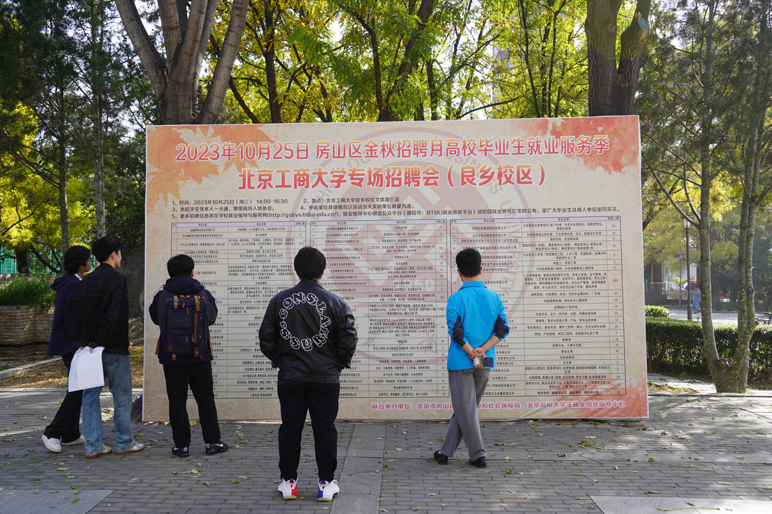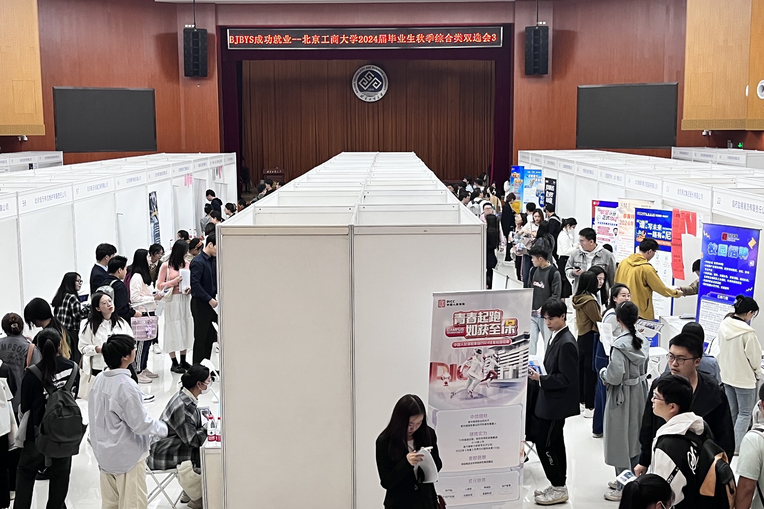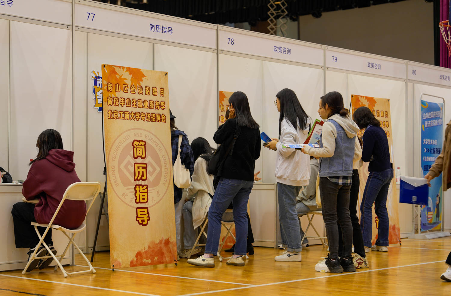 為貫徹落實就業優先戰略,助力畢業生高質量充分就業,10月25日,學校聯合北京市房山區人力資源和社會保障局在良鄉主校區舉辦“房山區金秋招聘月高校畢業生就業服務季北京工商大學專場招聘會”活動。本場雙選會吸引了中國通信建設集團有限公司、北京鐵路信號有限公司、中國平安財產保險股份有限公司北京分公司、北京中海地產有限公司、北京綠色交易所有限公司、中國石化集團北京燕山石油化工有限公司等70家用人單位,涵蓋經濟金融、化工材料、智能制造等多行業領域,共為畢業生提供就業崗位1700余個。共有近400名畢業生參會,累計投遞簡歷500余份,達成初步意向300余人次。
