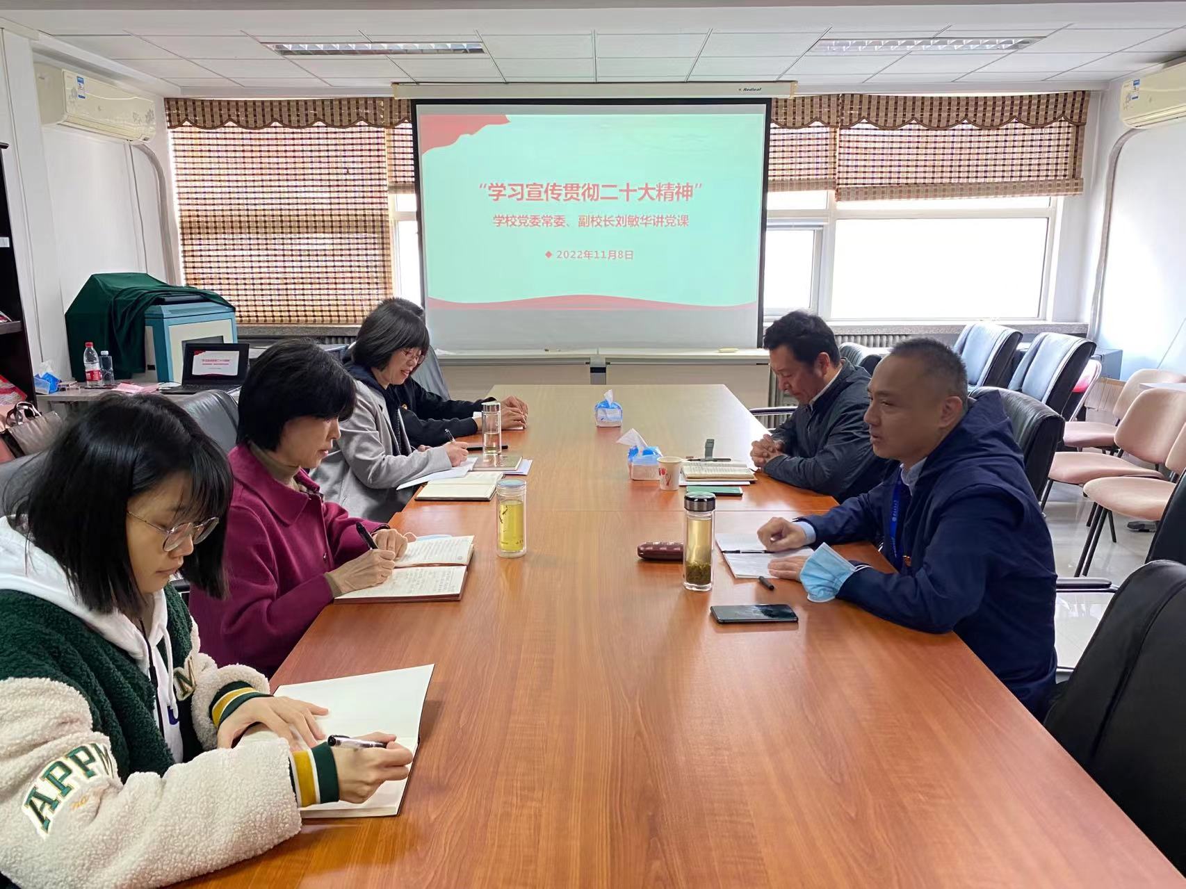 11月8日上午,學(xué)校黨委常委、副校長(zhǎng)劉敏華以“學(xué)習(xí)宣傳貫徹黨的二十大精神”為主題講授專題黨課,工會(huì)全體人員參加學(xué)習(xí)。黨課由工會(huì)黨支部書(shū)記杜亞輝主持。