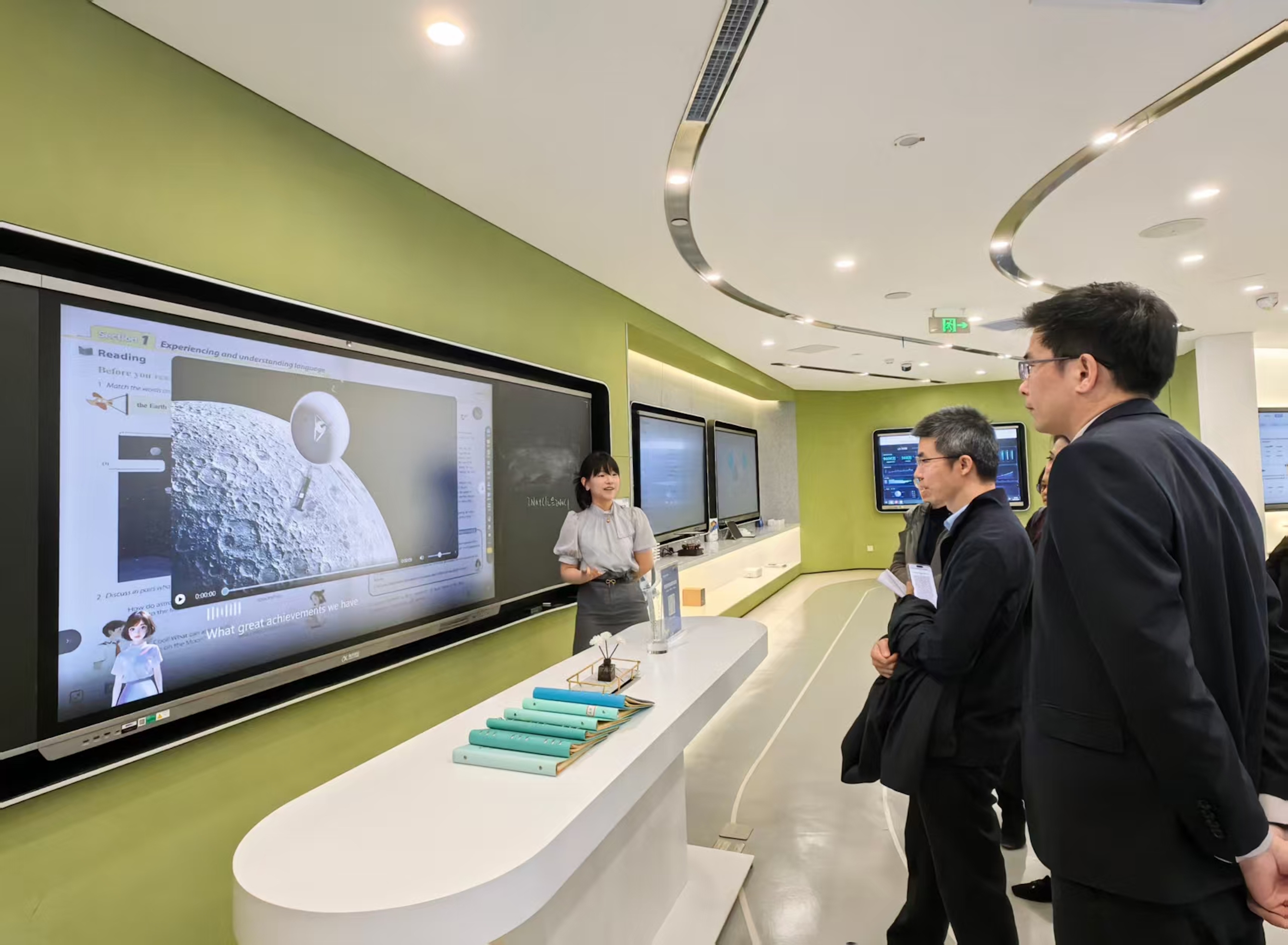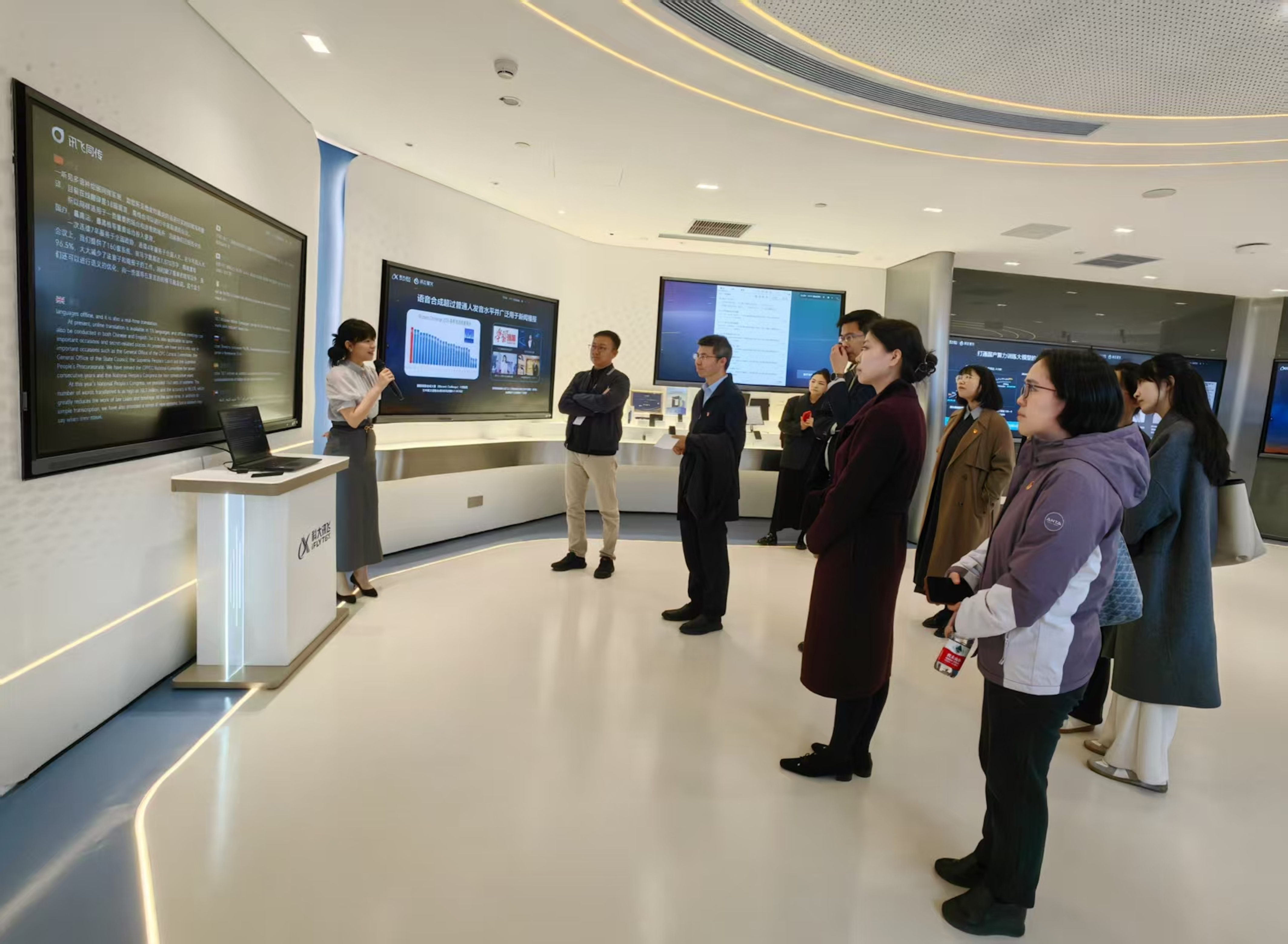 會后,毛新述一行參觀了科大訊飛人工智能展廳,現(xiàn)場體驗(yàn)了人工智能在智慧教育、智能語音識別、數(shù)字化教學(xué)等領(lǐng)域的創(chuàng)新應(yīng)用。