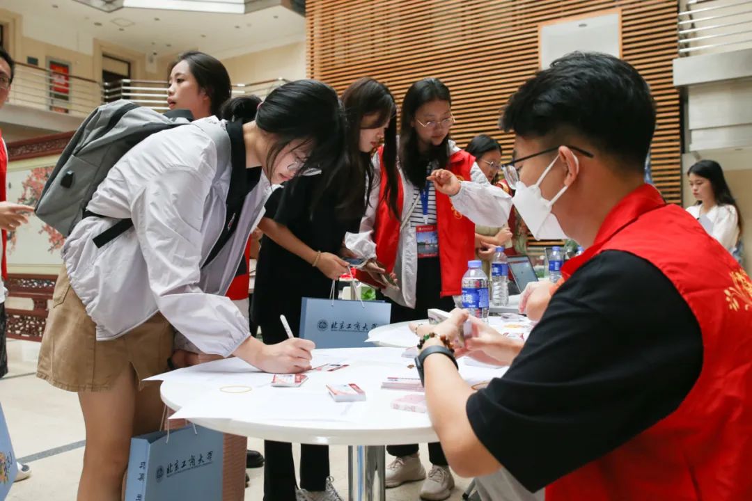 國際經(jīng)管學(xué)院精心策劃,暖心迎“新”。現(xiàn)場(chǎng)設(shè)置了家長(zhǎng)等候區(qū),家校互動(dòng)交流,共育成長(zhǎng)成才。醒目的學(xué)院吉祥物毛絨玩具小鯨、“奮進(jìn)國經(jīng)管,逐夢(mèng)北工商”、“鑄魂報(bào)家國,青春勇?lián)?dāng)”手勢(shì)牌等,引來新生紛紛打卡留念。