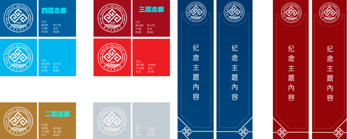 挖掘文化內涵,突出“工商融合”的設計思路。本次設計學習空間類型因更加豐富、靈活、多元,空間界面、靈活家具、設備設施的緊密結合設計,將發揮傳統教學所無法替代的功能與體驗。設計語言汲取學校校徽中的折線設計理念,結合工商首字母“G”與“S”的形式,在室內設計界面進行細化與升華,營造具有北工商校園特色文化的空間環境。空間色彩體系上呼應本校作為高水平研究型大學的發展目標,以學校標準色為基礎,結合各學科標志色融合設計,突出鮮明的校園文化特征及多元化的學科特色。