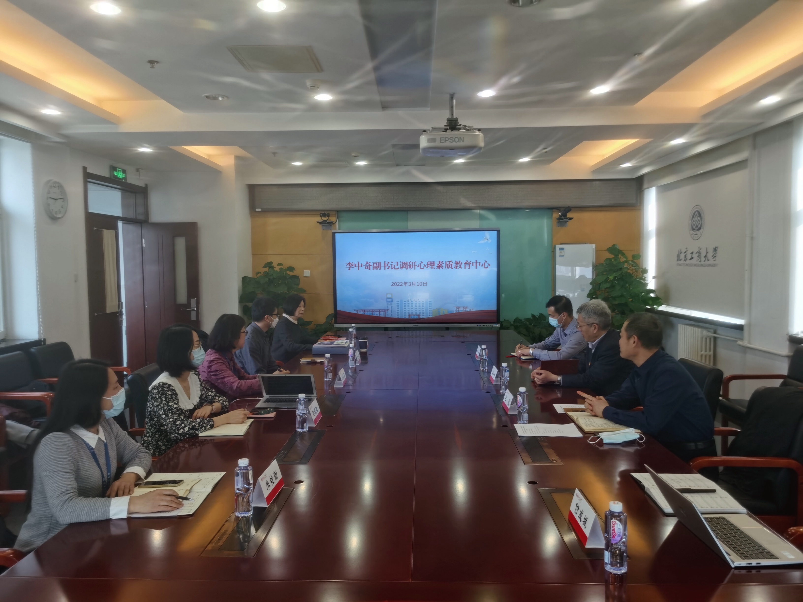 李中奇副書記在聽取匯報中針對學生心理健康教育教學、咨詢服務、危機干預、宣傳教育、師資力量等工作進行了詢問和了解,充分肯定心理中心取得的各項工作成績,表達了對心理中心全體教師辛勤工作的感謝,并對下一步工作提出具體要求。一是提高政治站位,宏觀謀劃設計。根據學校“無健康不工商”的理念,切實加強全校心理健康工作質量,以科研促工作,以學術促服務,守住教育底線,最大程度避免校園極端事件發生,踐行“五育并舉”、“身心健康”的育人目標。二是擴充專業隊伍,加強基礎建設。為了更好地滿足學生心理服務需求,進一步減少預約咨詢排隊等候時間,降低危機事件發生風險,要在保證專職心理教師隊伍全員滿編的情況下,逐步擴大外聘兼職心理咨詢師隊伍,推進與校外同行及專業機構的溝通合作,完善心理健康教育服務場地設施及服務管理網絡平臺建設,組建一支專家化的工作團隊。三是加大宣傳力度,打造專業品牌。強調要求品味,出實效,豐富宣傳教育內容和形式,持續開展學生喜聞樂見的心理活動,將知識科普和健康理念滲透入校園生活,增強學生自我排解、自我療愈的能力,同時形成特色心理活動品牌,宣傳推廣至北京市其他高校,提升我校社會影響力。