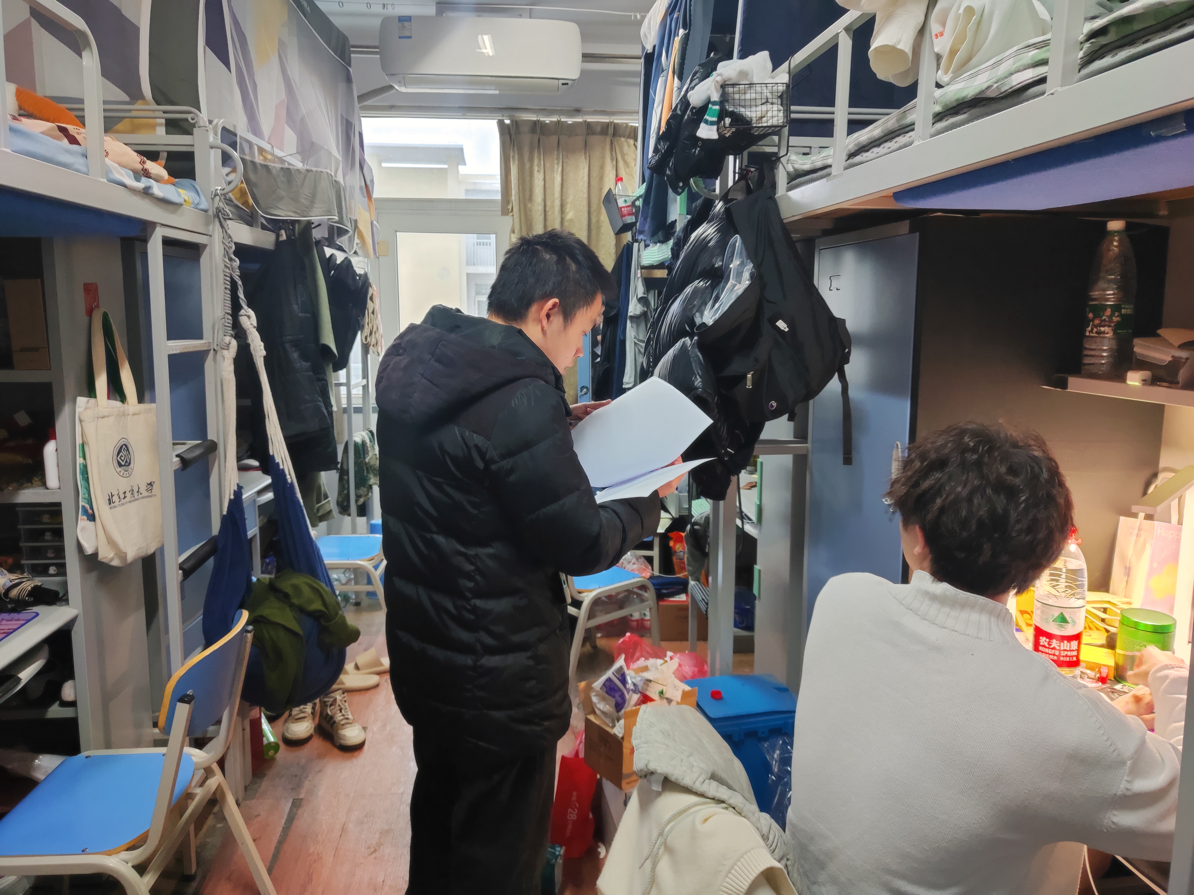 12月14日,學生處、研究生工作部、公共事務處、保衛處負責人以及各學院輔導員協同聯動,組成11個聯合檢查組,對全校兩校區5個組團、12棟宿舍樓10個學院的348間學生宿舍進行了抽查。