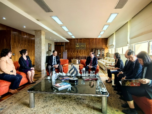 在巴西訪問(wèn)期間,訪問(wèn)團(tuán)一行還前往中國(guó)海油巴西有限公司進(jìn)行交流,并與中國(guó)海油駐拉美地區(qū)黨工委書記、中國(guó)海油巴西有限公司總經(jīng)理黃業(yè)華舉行會(huì)談。黃業(yè)華總經(jīng)理介紹了中國(guó)海油巴西有限公司在巴西開展的業(yè)務(wù)內(nèi)容,以及服務(wù)巴西當(dāng)?shù)亟逃幕南嚓P(guān)情況。黃先開介紹了我校的總體情況以及國(guó)際交流情況,表示希望能夠依托中國(guó)海油在巴西建立的平臺(tái),進(jìn)一步開拓我校與巴西產(chǎn)業(yè)界的聯(lián)系和交流,共同服務(wù)中巴兩國(guó)教育科技合作與交流。中國(guó)海油巴西有限公司副總經(jīng)理李志軍、胡雪峰參加了會(huì)談。