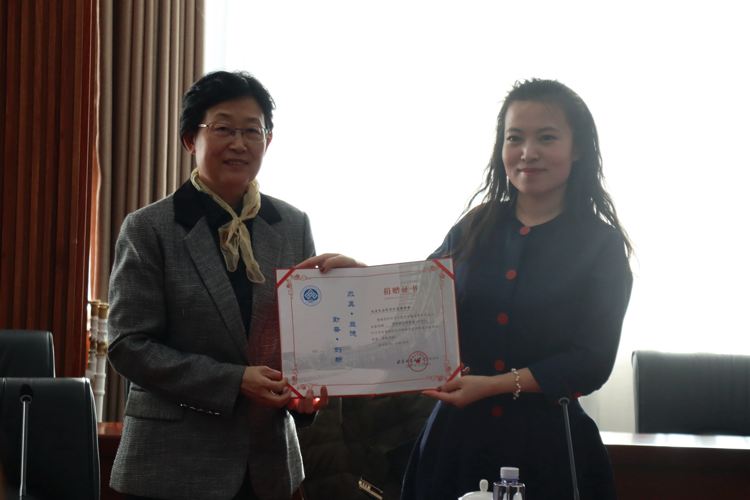 與會人員為首屆長安勵志獎學金獲獎學生頒發(fā)證書。獲獎學生代表古麗達娜·白山別克分享了獲獎的喜悅,并表達了對校友侯守法和北京長安投資公益基金會的感恩與感激。她談到,感謝北京長安投資公益基金會設立長安勵志獎學金,對家庭經(jīng)濟困難學生給予獎勵;感謝校友侯守法在取得輝煌成就的同時,依然心系學弟學妹們的學習與成長;感謝學校給學子們實現(xiàn)夢想的機會。她表示將珍惜這份榮譽和激勵,不辜負大家的殷切期望,努力學習,為國家第二個百年奮斗目標的實現(xiàn)貢獻力量。