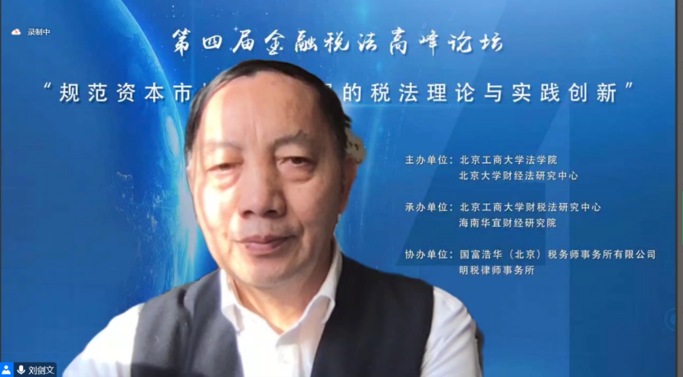 12月11日,由我校法學院和北京大學財經法研究中心主辦、北京工商大學財稅法研究中心和海南華宜財經研究院承辦、國富浩華(北京)稅務師事務所有限公司及明稅律師事務所協辦的第四屆金融稅法高峰論壇隆重舉行。論壇以“規范資本市場財富積累的稅法理論與實踐創新”為主題,來自各大高校、學術團體、實務部門的專家學者共千余人線上參會。校黨委常委、副校長徐丹丹出席會議并講話。開幕式由法學院副院長(主持工作)陳敦主持。