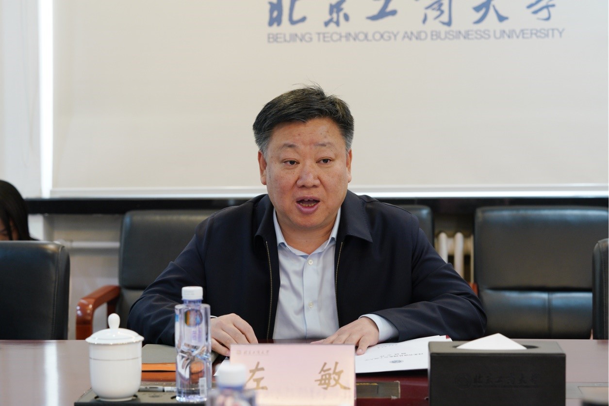 左敏代表學校對林毅、孫輝一行來訪表示熱烈歡迎,結合學校宣傳片,進一步介紹了學校的歷史沿革、辦學特色、學科建設、科學研究等情況。他表示,北京工商大學作為北京市重點建設的高水平研究型大學,始終堅持立足北京,服務京津冀協同發展。學校將充分發揮學科特色,積極匯聚優勢資源,深入推進與威縣在食品產業、鄉村旅游、教育教學、電商物流供應鏈等領的溝通交流、對接合作,在威縣建設中貢獻北工商力量,在鄉村振興中展現更大作為。