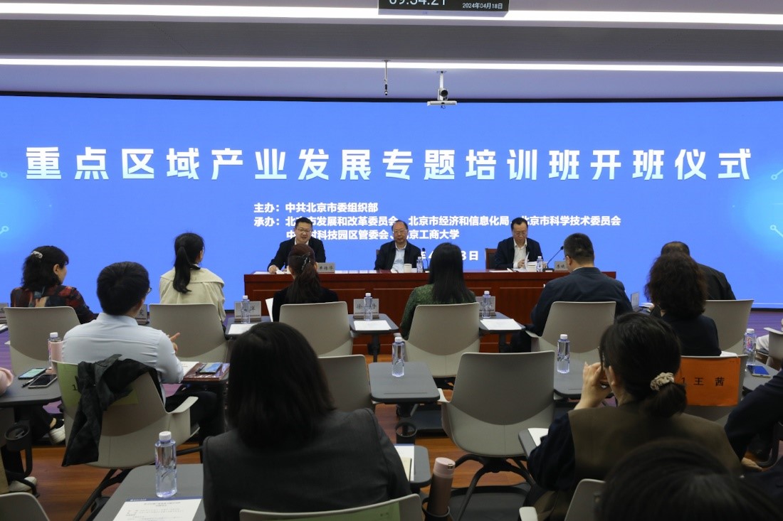 4月18日,北京市委組織部主辦,市發展改革委、市經濟和信息化局、市科委和我校共同承辦的重點區域產業發展專題培訓班開班儀式在我校阜成路校區舉行,市發改委黨組成員、副主任李曉濤,市委組織部干部教育處處長、電教中心(干教中心)主任、一級調研員單傳華,市經濟和信息化局規劃處副處長李朋,市科委、中關村管委會人事處副處長唐愛雯,我校黨委書記黃先開,黨委副書記宋曉欣,黨委常委、副校長徐丹丹出席,來自部分鄉鎮、街道、重點園區相關產業的參訓學員共50人參加。開班儀式由單傳華主持。