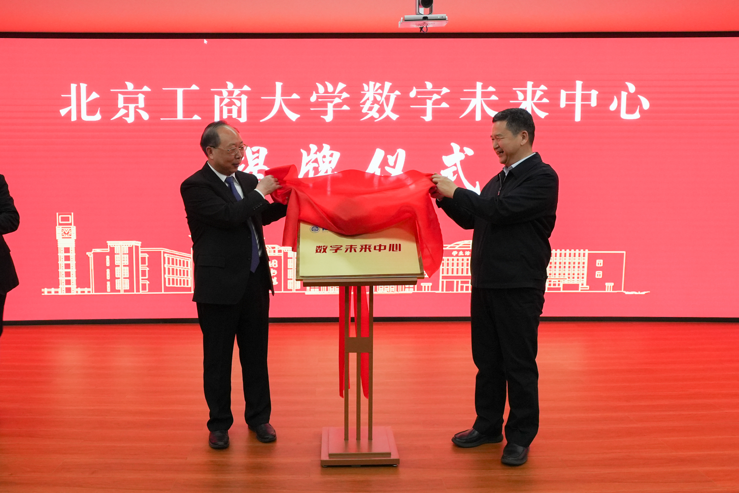 武世興與黃先開共同為北京工商大學數(shù)字未來中心揭牌。