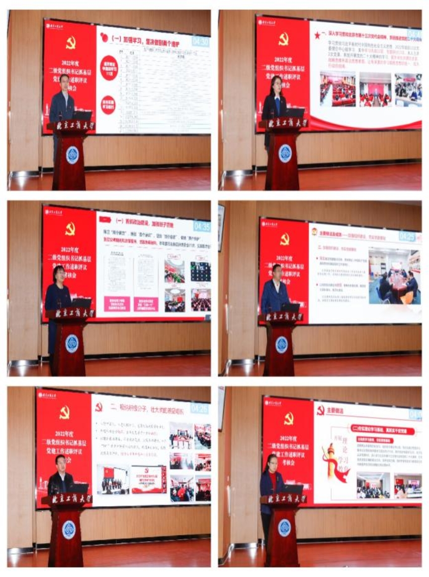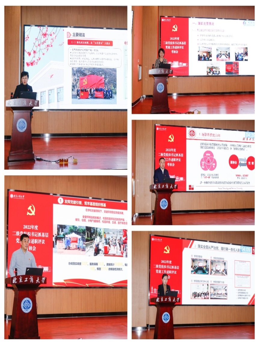 按照上級工作部署,結合學校實際,述職評議考核會沿用現場述職和書面述職相結合、“限時脫稿講+一述一評議”的形式進行。11位二級黨組織書記以PPT文稿演示的形式,聚焦黨建第一責任人職責,匯報展示了抓基層黨建工作和黨建引領保障事業發展等方面的工作成效、存在的問題和下一步工作思路,其余二級黨組織書記提交了書面述職報告。