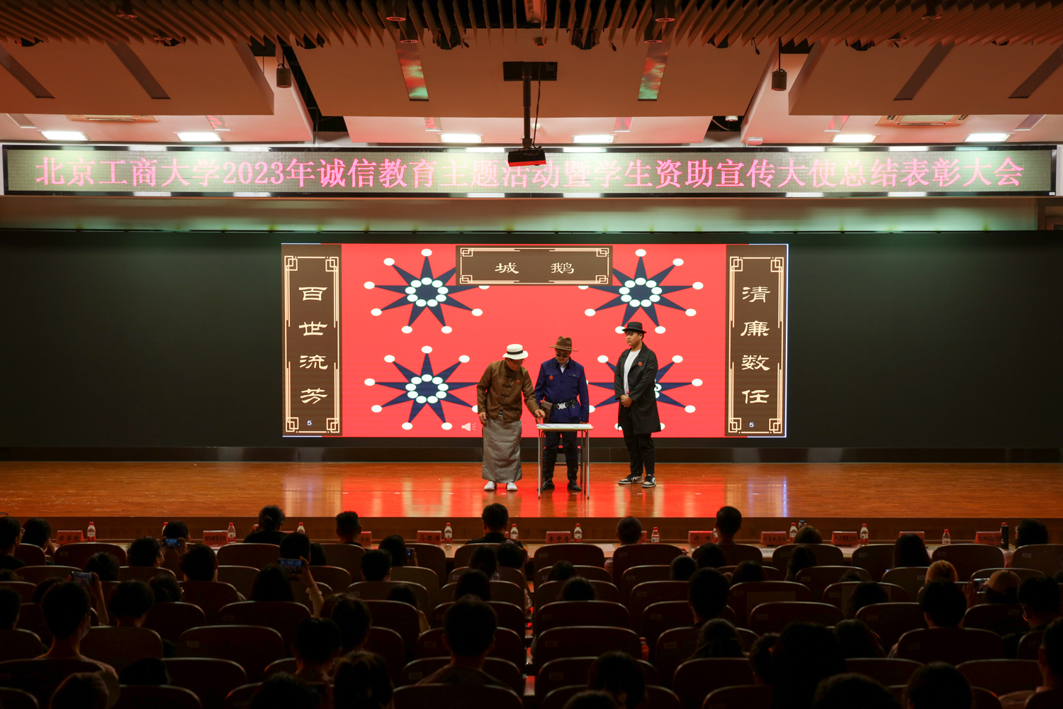 本次短劇比賽是我校2023年誠信教育主題活動的重要一環。綜合前期誠信主題班會、廉潔知識競賽、誠信書畫、誠信主題演講以及各學院特色工作開展情況,經濟學院、法學院和國際經管學院獲評2023年誠信教育主題活動優秀組織獎。活動現場還展示了第五屆“學生資助宣傳大使”工作情況,并為獲評“優秀學生資助宣傳大使”的學生頒發獎杯。