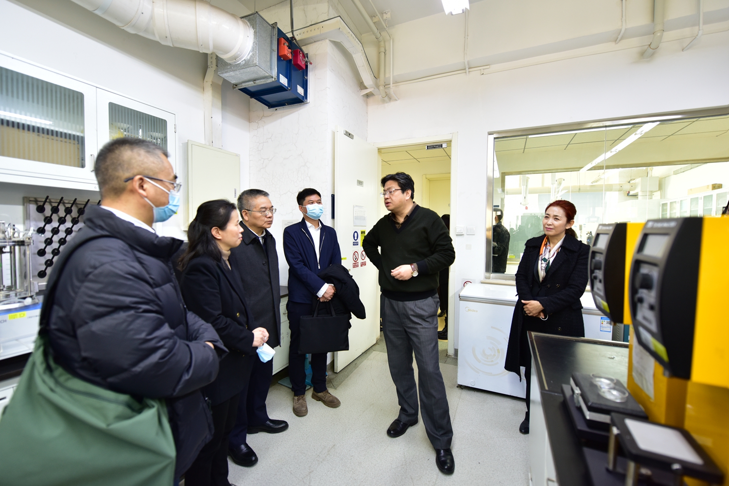 蘇向東一行先后參觀了學(xué)校阜成路校區(qū)蛋白資源開發(fā)與營(yíng)養(yǎng)食品研究實(shí)驗(yàn)室、食用香精實(shí)驗(yàn)室、功能性食品配料與營(yíng)養(yǎng)研究實(shí)驗(yàn)室、植物資源研究開發(fā)北京市重點(diǎn)實(shí)驗(yàn)室,及良鄉(xiāng)主校區(qū)數(shù)學(xué)與統(tǒng)計(jì)學(xué)院智慧教室和圖書館、校史館,聽取了學(xué)校農(nóng)產(chǎn)品質(zhì)量安全追溯技術(shù)及應(yīng)用國(guó)家工程實(shí)驗(yàn)室工作匯報(bào),副校長(zhǎng)鄭文紅、徐丹丹分別陪同參觀。