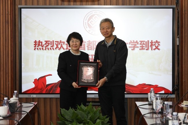 雙方互贈紀念品,并表示雙方將繼續攜手并進,在緊密合作的基礎上,共同書寫高等教育高質量發展的新篇章。