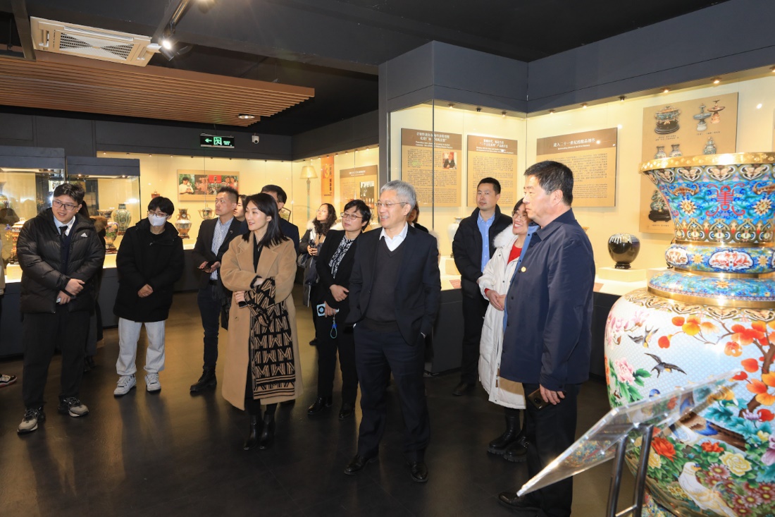 簽約儀式結束后,李中奇一行在謝燕華的陪同下,參觀中國景泰藍博物館和生產車間,深度了解景泰藍發展歷史和制作工藝。李中奇在參觀中指出,作為舊時宮廷獨享的景泰藍,歷經滄桑變革,成為中華民族優秀傳統文化的靚麗名片。他鼓勵同學們通過了解景泰藍的發展歷史,探求中華文明的真諦,體悟實踐育人內涵,堅定對中華優秀傳統文化、對國家和民族未來的信心。