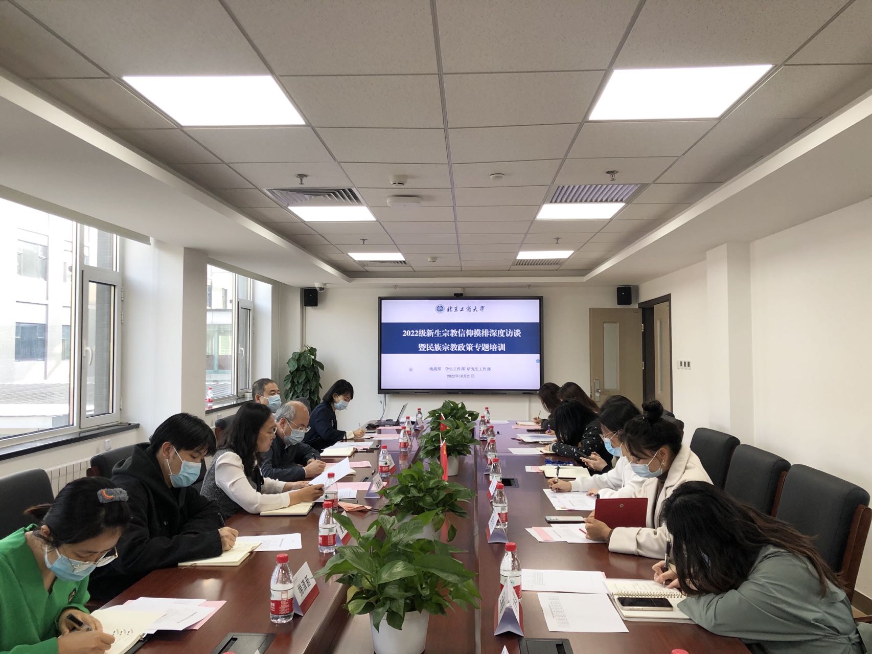 少數民族輔導員阿力達介紹了2022級新生宗教信仰摸排情況。調查結果顯示,大部分學生對國家民族宗教政策有充分的認識和了解,但也存在極少數學生對宗教信仰自由政策了解不全面、不準確的現象。蓋曉慶就今年調查結果的特點進行了說明,并從做好談話前期準備、設計好談話內容以及談話后的材料歸檔三個方面就輔導員開展深度訪工作進行了實操培訓。