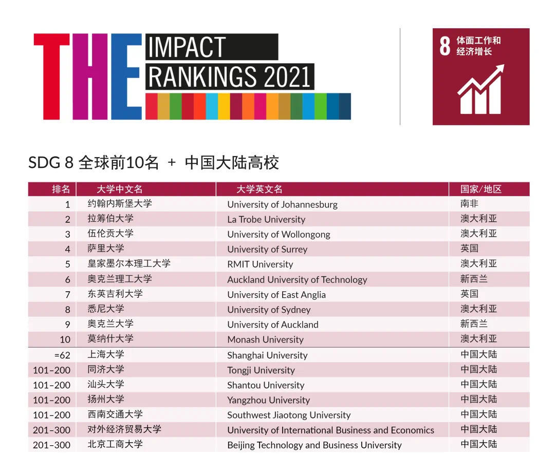 4月21日,泰晤士高等教育(THE)發布了2021年世界大學影響力排名。本次排名中,共有北京工商大學同上海大學、同濟大學、蘇州大學等19所中國大陸高校上榜。我校分別上榜總排名和3個SDG單項排名。