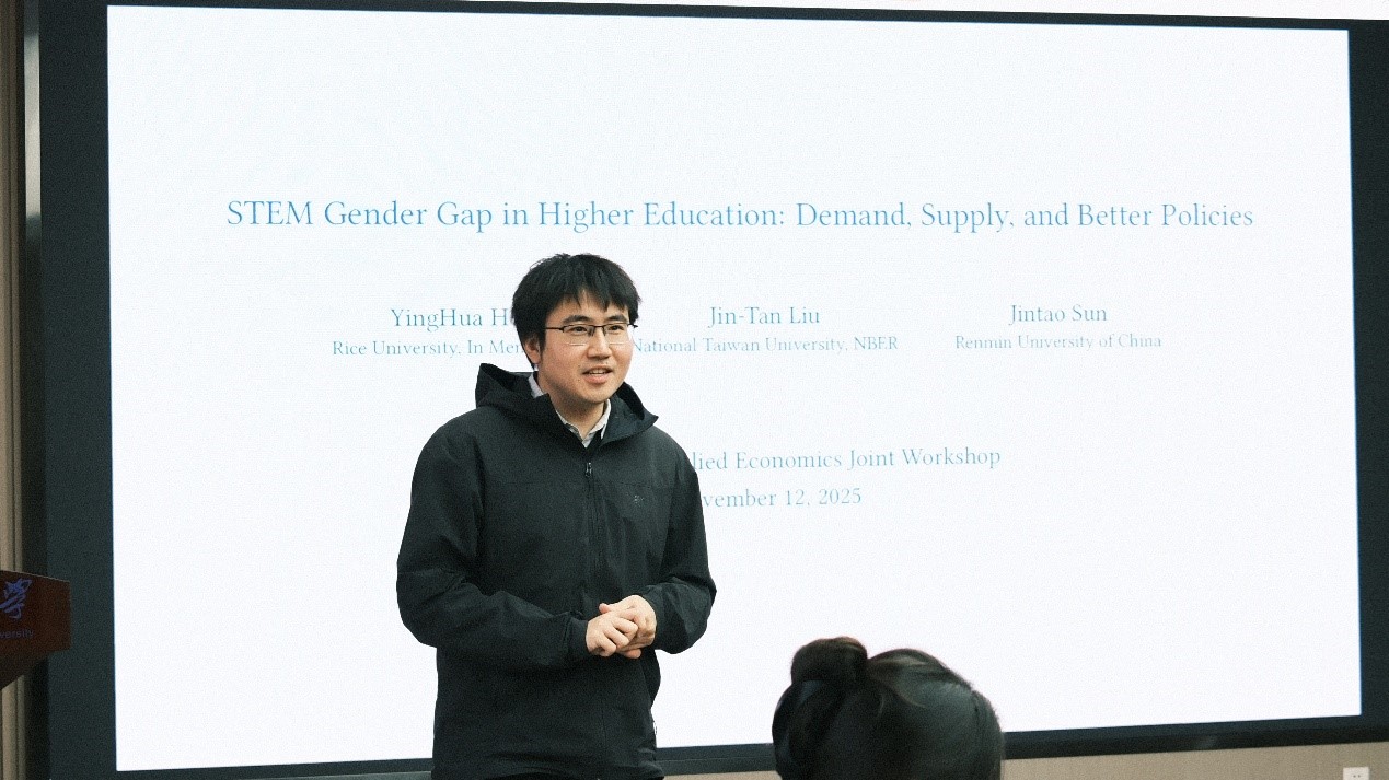 人民大學孫津韜老師報告了論文“STEM Gender Gap in Higher Education: Demand, Supply, and Better Policies”。研究利用中國臺灣地區2003年全面的大學招生數據,探討了STEM領域的性別差距問題。研究發現,盡管女性已占大學畢業生多數,但在理工科專業中占比僅為30%。研究的主要結論是,超過一半的性別差距源于學生早期的決策——女性學生絕大多數選擇了非理工科,即沒有參加理工科專業所需的科目考試。反事實政策模擬顯示,由于決策問題,免除學費或增加女性教師比例等政策對縮小整體差距幾乎無效。韓璇老師進行了點評,她建議增加后續隊列或進行前后對比,以檢驗性別差距機制的穩定性。