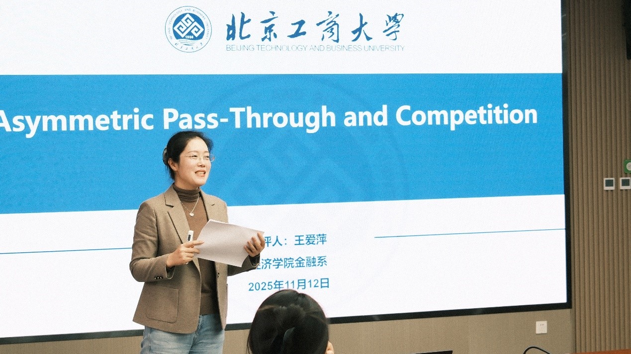 ????魏楚感謝北京工商大學的精心組織,高度肯定了北京工商大學應用經濟學科實力不斷提升和濃厚的學術氛圍,重點介紹了人民大學應用經濟學院圍繞構建自主人才培養體系和自主知識體系所開展的系列工作。希望未來與我校經濟學院在科學研究、學科建設、人才培養、教師發展等方面進一步加強合作,并誠摯歡迎北工商優秀學子赴人民大學深造。在青年教師學術沙龍環節,中國人民大學應用經濟學院副院長陳占明教授主持第一單元的學術交流。