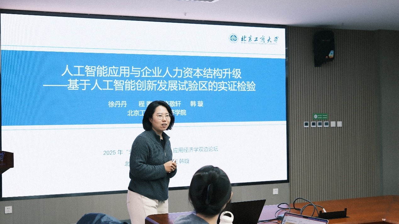 北京工商大學韓璇老師報告了論文《人工智能應用與企業人力資本結構升級——基于人工智能創新發展試驗區的實證檢驗》,該文以人工智能試驗區為準自然實驗,應用異質性穩健的事件研究法探討人工智能創新發展試驗區的設立對企業人力資本結構的影響,發現試驗區的設立通過推動人工智能技術的應用和創新兩條渠道,顯著擴張了與人工智能技術互補的技能勞動者崗位。孫津韜老師進行了點評,他建議增加討論技能勞動力增量的供給機制分析,并探討技能勞動力的來源。