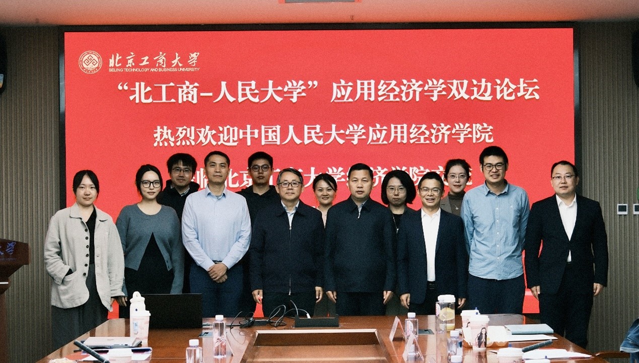 11月12日上午,“北工商-人民大學”應用經濟學雙邊論壇在北京工商大學良鄉主校區舉辦。北京工商大學黨委常委、副校長寇紅江,中國人民大學應用經濟學院院長魏楚教授、副院長陳占明教授、呂媛、孫津韜、栗雅欣,北京工商大學經濟學院執行院長詹新宇教授、副院長許敬軒教授,學校人文社科處副處長岳鵬鵬副教授,經濟學院金融系王愛萍副教授,經濟系韓璇、張凡,保險系張寓副教授,貿易經濟系教師王漫玉和學院20余位研究生參加此次論壇交流活動。