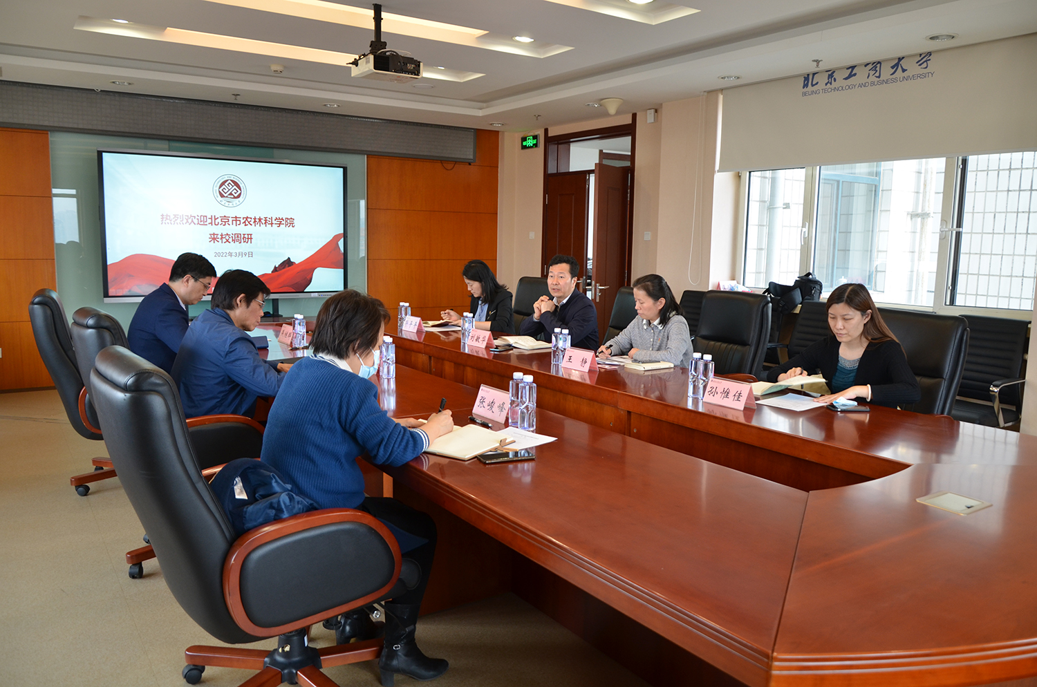 會上,王靜詳細(xì)介紹了學(xué)校近年來在科研平臺、科研項目、科研獲獎等方面取得的成績,并重點介紹了食品與健康學(xué)院在人才隊伍、科學(xué)研究、對外合作等方面的情況,希望與北京市農(nóng)林科學(xué)院進(jìn)一步加強合作交流,促進(jìn)共同發(fā)展。畢平平、張峻峰對各自學(xué)校人才隊伍建設(shè)、人事人才相關(guān)工作及推進(jìn)人事制度改革的相關(guān)情況進(jìn)行了詳細(xì)的溝通交流。