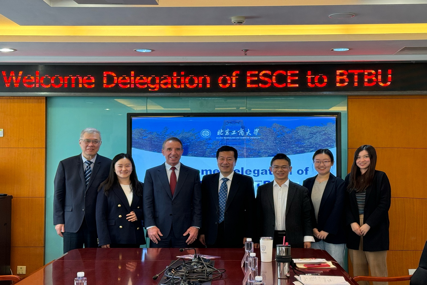 劉敏華對代表團來訪我校表示熱烈歡迎。他介紹了學校的發展歷程,以及近期在學院設置、學科建設、師資隊伍、人才培養等方面的情況,邀請法國巴黎高等對外貿易學院加入我校發起的全球商科數字化教育聯盟。他表示,學校的目標是發展成為具有全球影響力和特色鮮明的高水平研究型大學,國際化開放辦學是未來特色發展的戰略選擇。北京工商大學和法國巴黎高等對外貿易學院有著13年的深厚合作關系,交流交往十分密切,希望雙方未來能夠在學科融合中開展交流與合作,在人才培養交流、國際科研合作、商科國際認證、中高端培訓項目等方面不斷深化拓展,取得更多的成果。