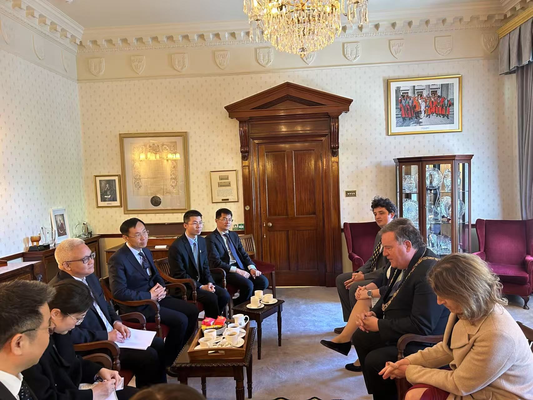 會見結(jié)束后,在厄休拉和毛新述的共同陪同下,馬駿副市長一行前往科克市市政廳,與科克市市長丹·博伊爾(Dan Boyer)進(jìn)行了見面,雙方就科克市與北京市在經(jīng)貿(mào)合作、高科技產(chǎn)業(yè)以及教育雙向交流等方面的內(nèi)容進(jìn)行了交流。