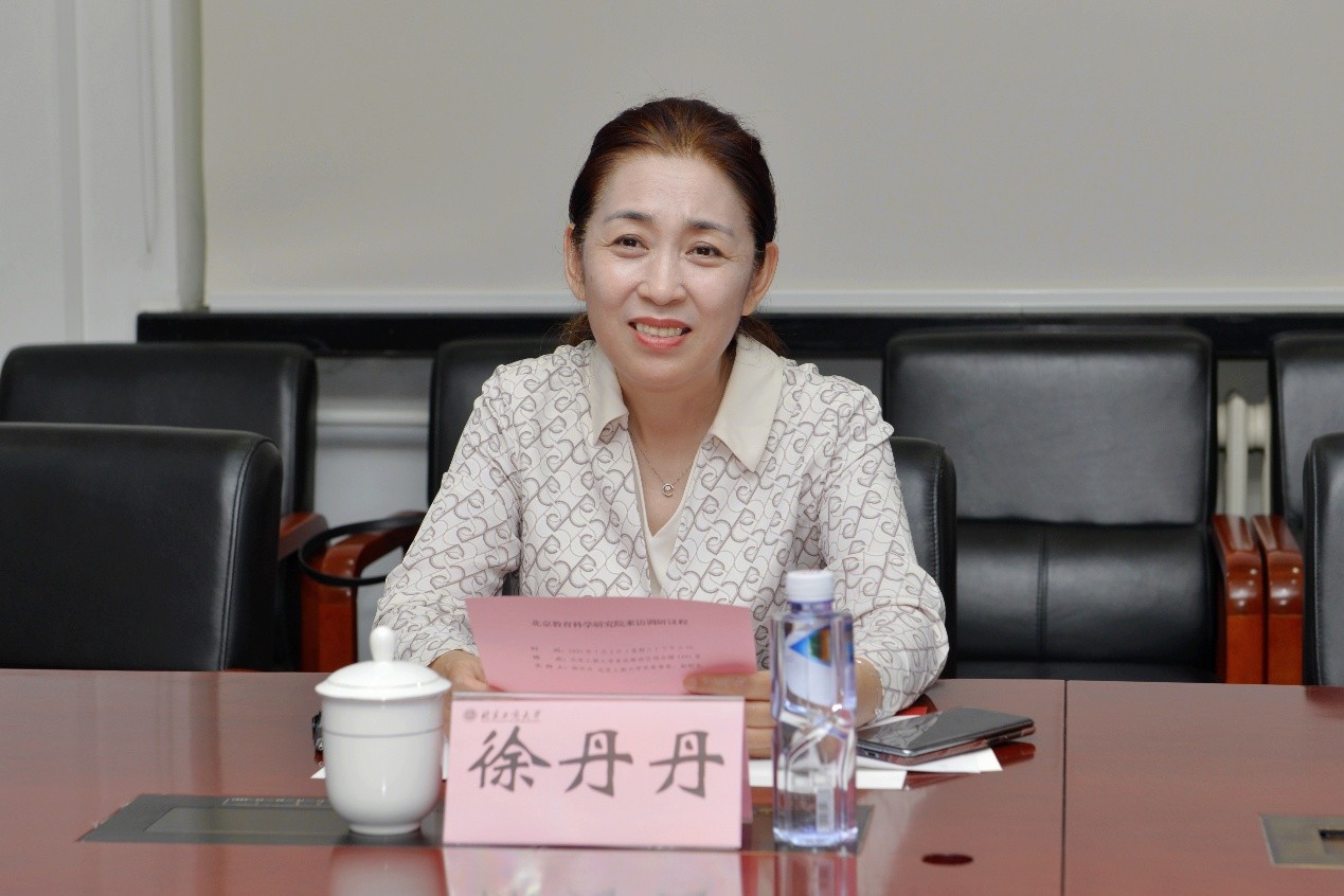 會上,雙方觀看了學校專題宣傳片。徐丹丹對北京教育科學研究院一行表示熱烈歡迎,并就我校的歷史沿革、辦學定位、工商一體化人才培養(yǎng)模式、繼續(xù)教育的發(fā)展定位進行了詳細介紹。她表示希望以此次座談會為契機,相互借鑒先進經(jīng)驗,進一步加強校院之間的合作與交流。