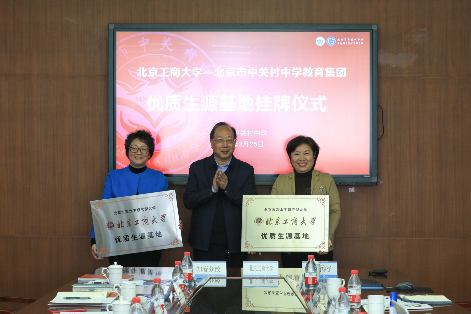 隨后,我校與中關村中學及知春分校分別簽署《優質生源基地合作協議》,并舉行了“優質生源基地”授牌儀式。
