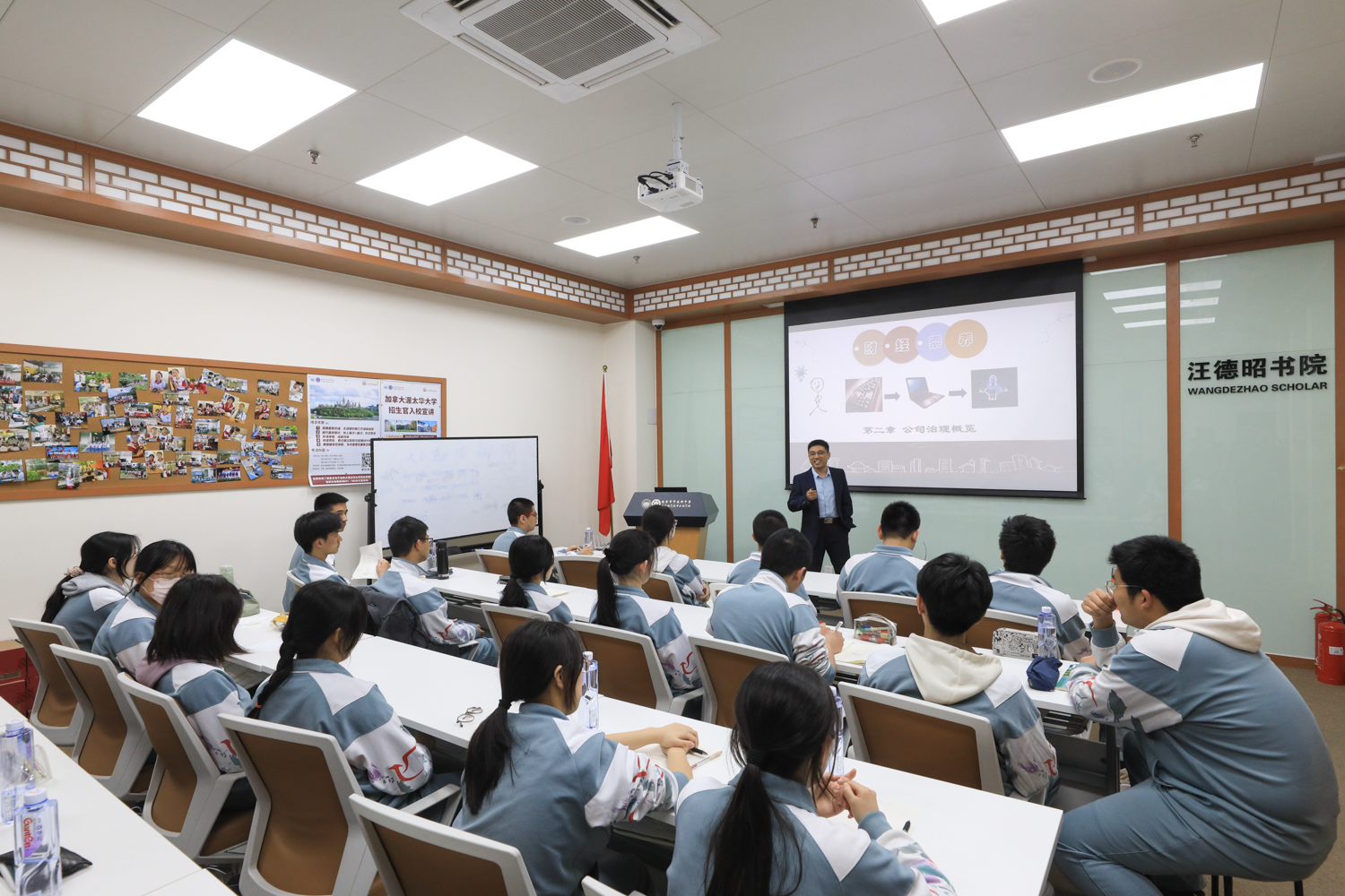 儀式結束后,雙方共同前往汪德昭書院聽課,深入了解由北京工商大學商學院教師開設的《財商素養》的課堂教學情況,并對未來繼續開設關于商科職業發展、職業教育引導課程等意向進行了深度研討,達成了廣泛的合作共識。