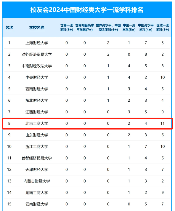 近日,全國第三方大學評價機構艾瑞深校友會網(Cuaa.net)最新發布校友會2024中國大學一流學科排名、2024中國財經類大學一流學科排名,全國有101個一級學科、886所高校的11517個學科點上榜。我校位列中國財經類大學一流學科排名第8名。