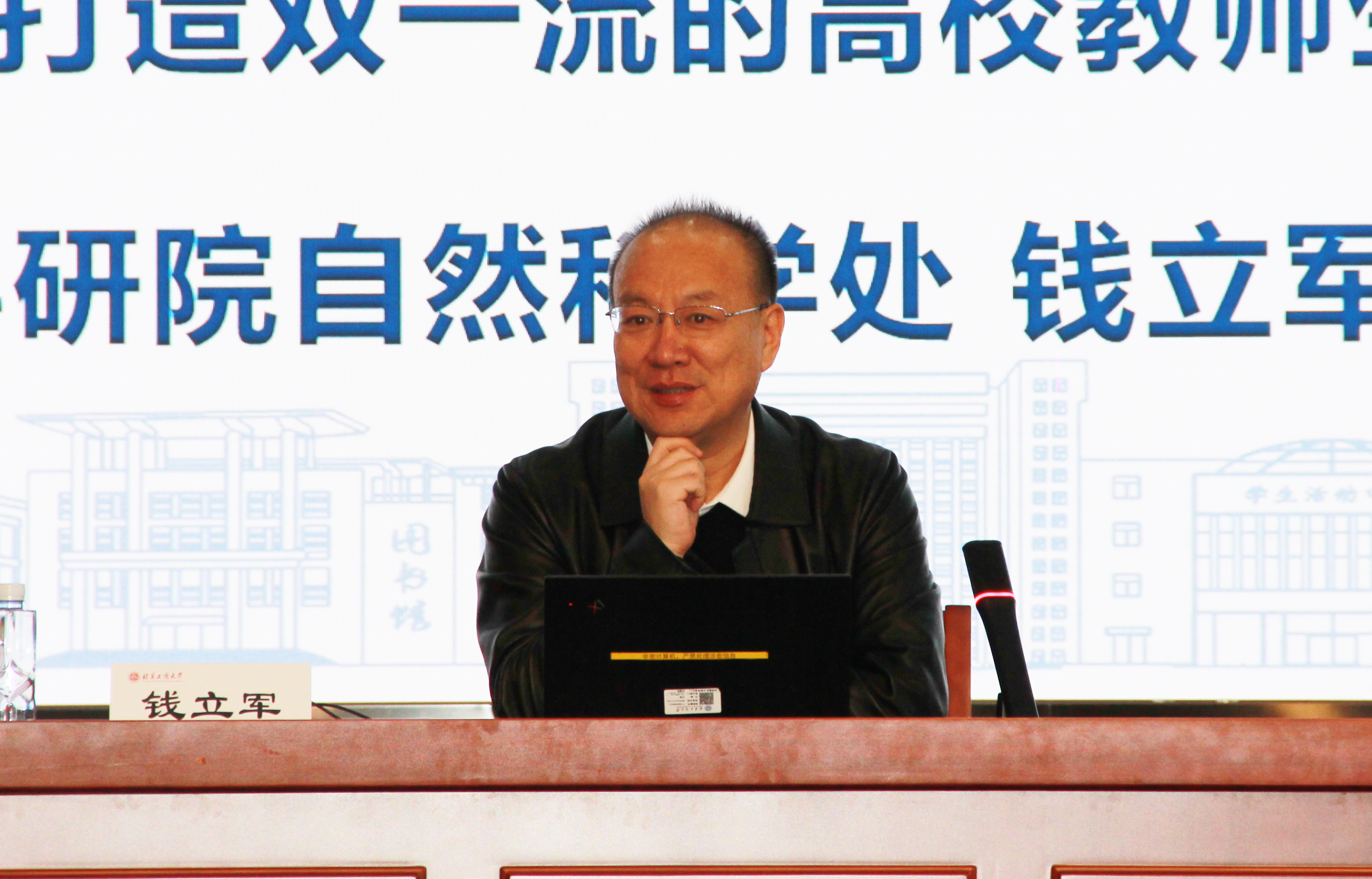 郭建華作“教育家精神”專題輔導報告。他從歷史與現狀、責任與使命、寄語與期望三個方面深刻回顧了學校的悠久歷史和發展軌跡,全面展示了學校的核心優勢和顯著成果。同時,他向新入職教職工表達了深厚的期望。他強調,要堅定圍繞加快創建“雙一流”學科、全面推進高水平研究型大學建設的奮斗目標,按照“堅持一條主線、落實兩校區發展規劃、加快推進三大轉型、穩步推動四個學部改革”的發展思路,把握機遇、凝心聚力,共同為學校的高質量、內涵式發展貢獻力量。他指出,要明確教師的責任和使命,深刻理解北工商的歷史傳統,立志成為“躬耕教壇、強國有我”的典范,踐行“愛國、愛教、愛生”以及“身教、能教、善教”的教育理念。最后,他鼓勵青年教師珍惜青春年華,充分享受學習的樂趣,揮灑創造激情,切實擔負起對國家、對社會的使命和責任,大力弘揚教育家精神,爭做學生為學、為事、為人的大先生。
