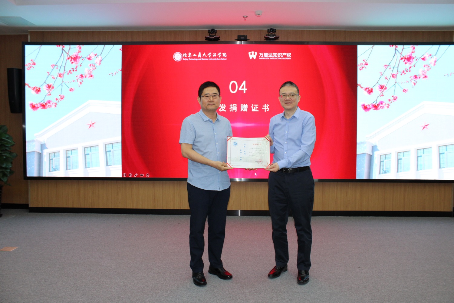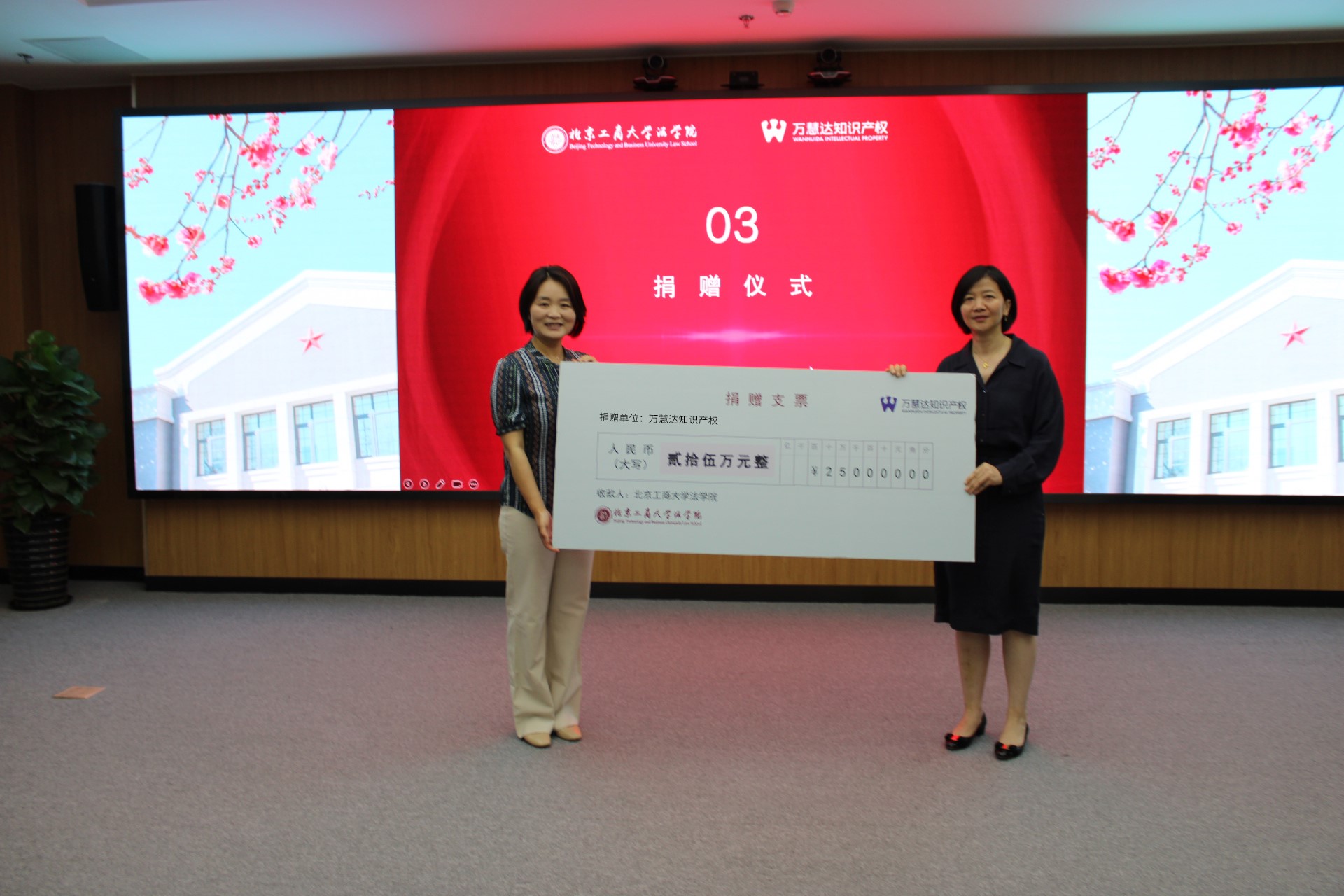 在捐贈儀式環節,萬慧達向北京工商大學法學院捐贈人民幣25萬元,用于發展學院法學學科和培養知識產權領域法學創新人才。