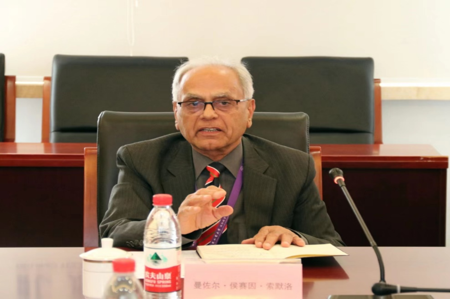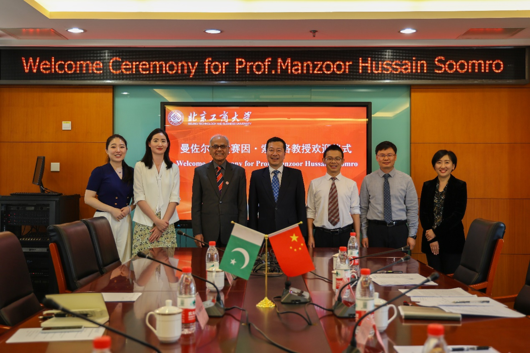5月10日,學校名譽教授曼佐爾·侯賽因·索默洛教授(Manzoor Hussain Soomro)歡迎儀式在阜成路校區舉行。黨委常委、副校長劉敏華出席會議。國際經管學院院長詹新宇,人事處副處長錄馳沖,國際交流與合作處副處長馬雪嬌,“一帶一路”聯合培訓中心主任邸玉娜,國際經管學院數字經濟系副主任韓璐參加座談會。會議由馬雪嬌主持。