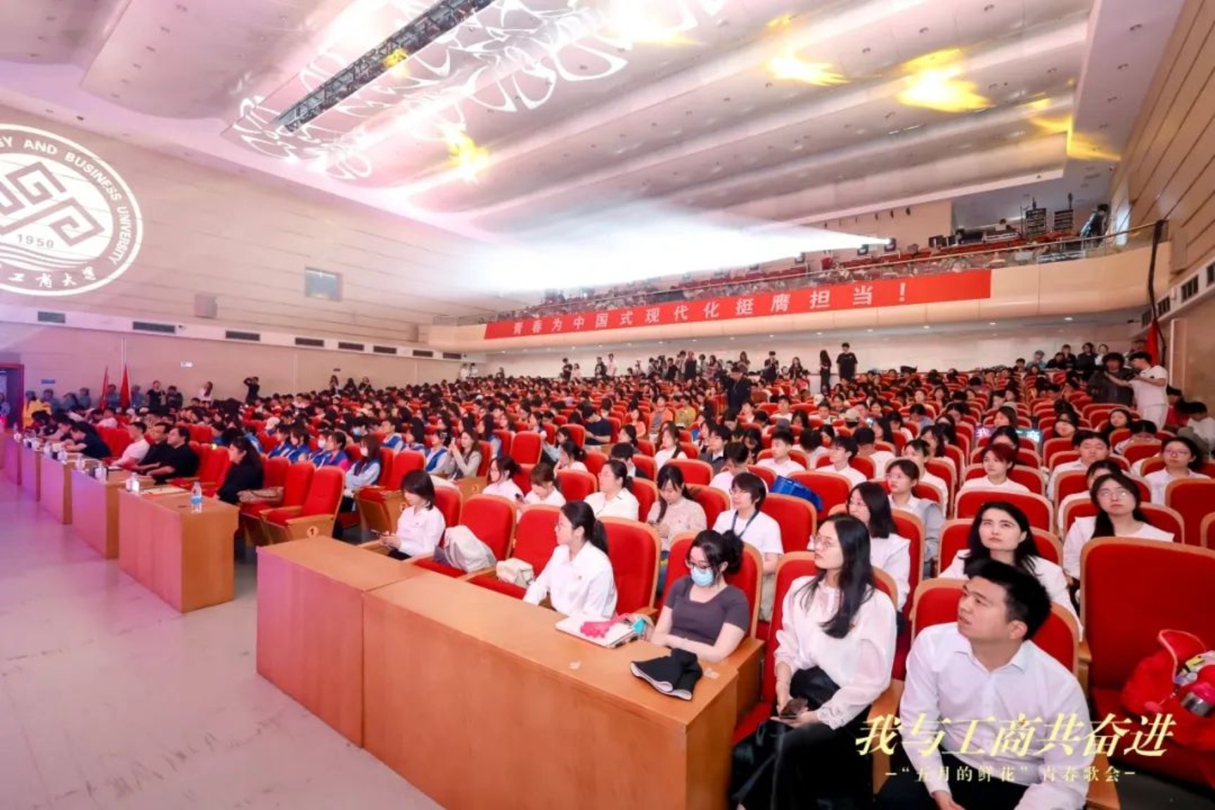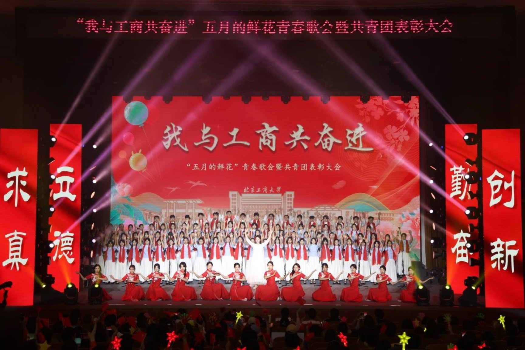 在校合唱團、管樂團帶來的《北京工商大學校歌》悠揚的歌聲中,全體北工商人齊唱校歌,激揚奮進斗志,大會圓滿落幕。