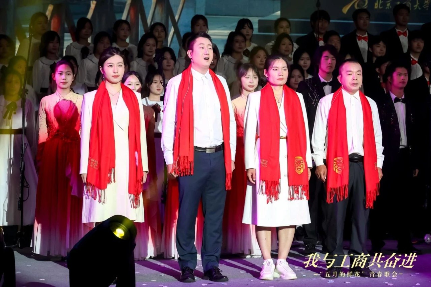 經濟學院、數字書院的《祖國不會忘記》《新的天地》,精心設計老中青三代校友傳承接力,展現北工商七十五載薪火相傳的奮進力量。他們用歌聲講述著母校發展的風雨兼程,他們用歌聲唱出一代代工商人的壯志豪情。