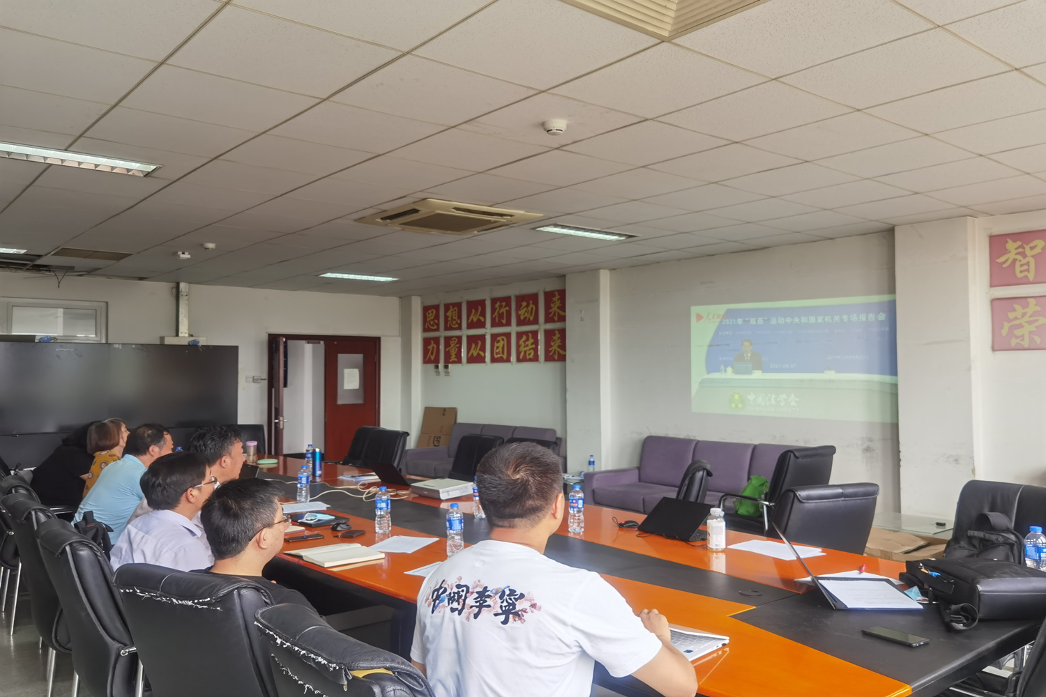 隨后理論學習中心組成員集體收看了人民網2021 年“雙百”活動直播課程:由中國法學會學術委員會副主任、法理學研究會會長、中國社會科學院學部委員李林做的題為《深入學習宣傳貫徹習近平法治思想》專場報告。