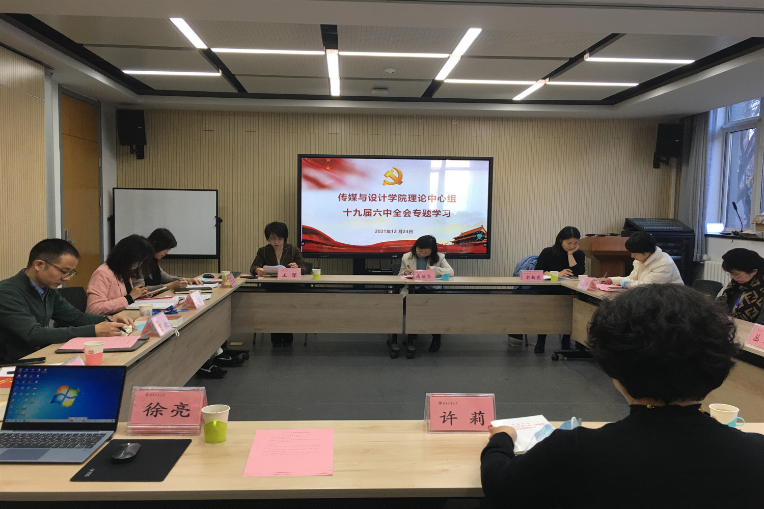 12月24日,傳媒與設計學院黨委理論學習中心組在良鄉主校區召開了十九屆六中全會精神專題學習會。學校黨史學習教育第五巡回指導組成員郭新愿、紀彬彬到會指導。學院理論學習中心組成員參加集體學習,教師黨支部書記列席會議。會議由科學研究院人文社科處處長(原傳媒與設計學院黨委書記)高麗華主持。