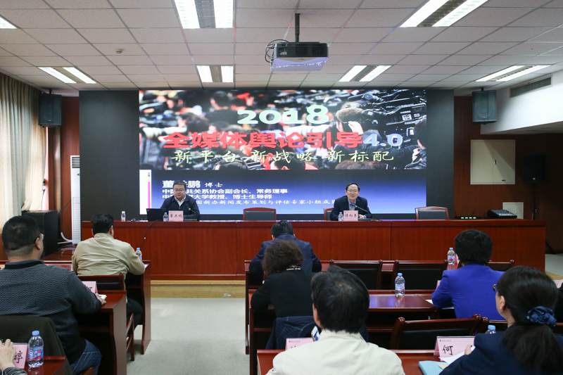 為深入學習貫徹黨的十九大精神,提高新聞輿論宣傳工作水平,4月11日,學校組織處級以上領導干部學習貫徹黨的十九大精神集中培訓,邀請中國傳媒大學教授董關鵬作題為《全媒體輿論引導的新平臺、新戰略、新標配》的專題報告。學校黨委理論中心組成員、全體中層干部參加培訓。培訓會由黨委書記譚向勇主持。