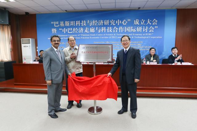 北京工商大學巴基斯坦科技與經濟研究中心11月30日正式揭牌,并于當日召開“中巴經濟走廊與科技合作國際研討會”。北京工商大學黨委書記譚向勇、中國科學技術協會國際聯絡部副部長王慶林和巴基斯坦駐華大使館參贊松贊·阿巴斯(ShozabAbbas)出席會議并共同為巴基斯坦科技與經濟研究中心揭牌。