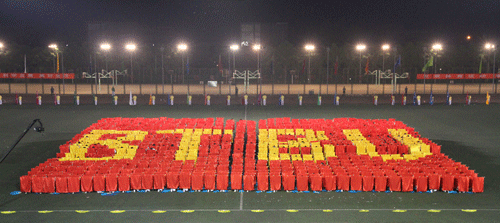 圖為北京工商大學(xué)運(yùn)動(dòng)會(huì)首現(xiàn)千人團(tuán)體操。